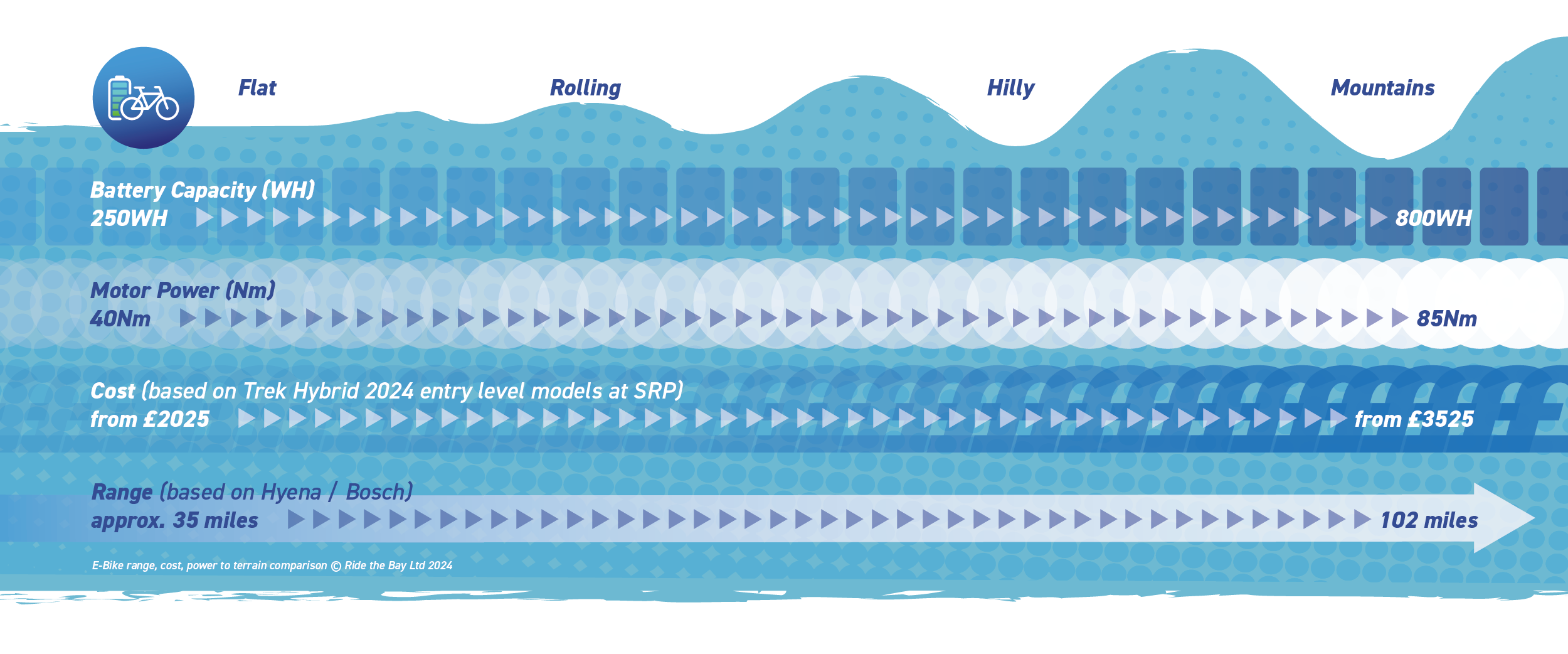 In most cases the power and torque of hub motors are lower than on a crank mounted system, so steep hills and heavy loads are not dealt with as efficiently. These bikes certainly have their limits, especially in the hilly Devon terrain.
