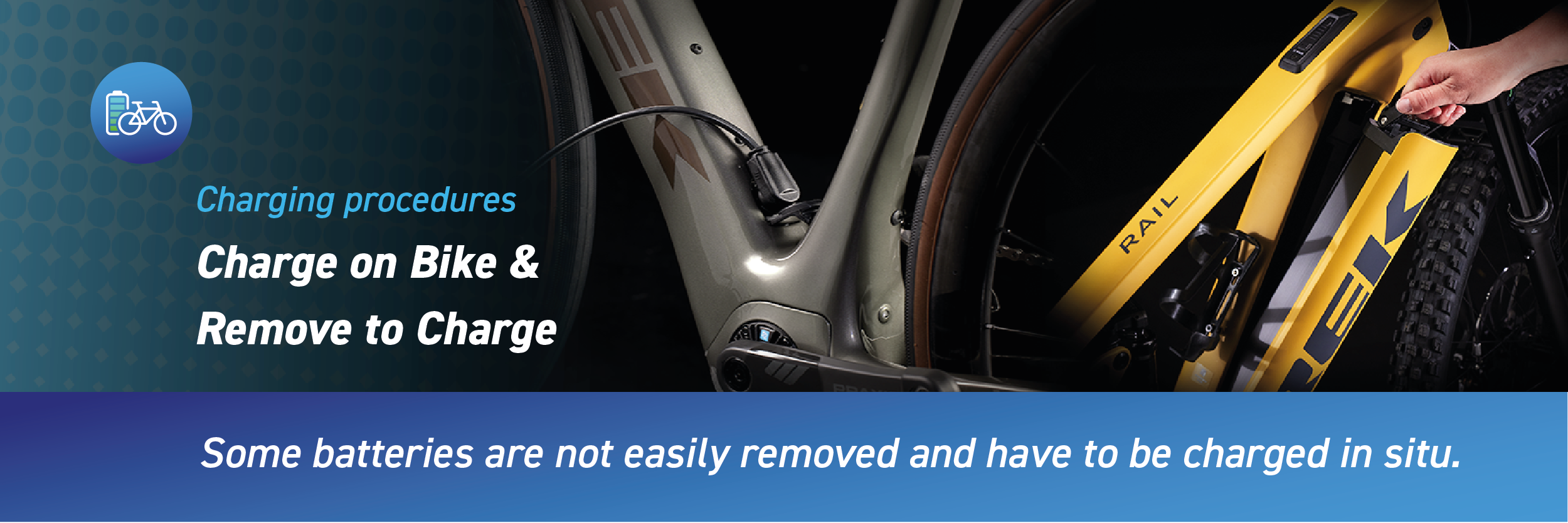 All the Trek electric bikes that are Bosch powered have removable batteries. Trek uses its tried and tested RIB system on its electric mountain bikes and premium electric leisure bikes. This Removable Integrated Battery (RIB) system looks great and is user-friendly: it fully hides the battery in the frame and makes it easy to remove and refit. Charging can be done off the bike or via a port in the frame with the battery in place.
