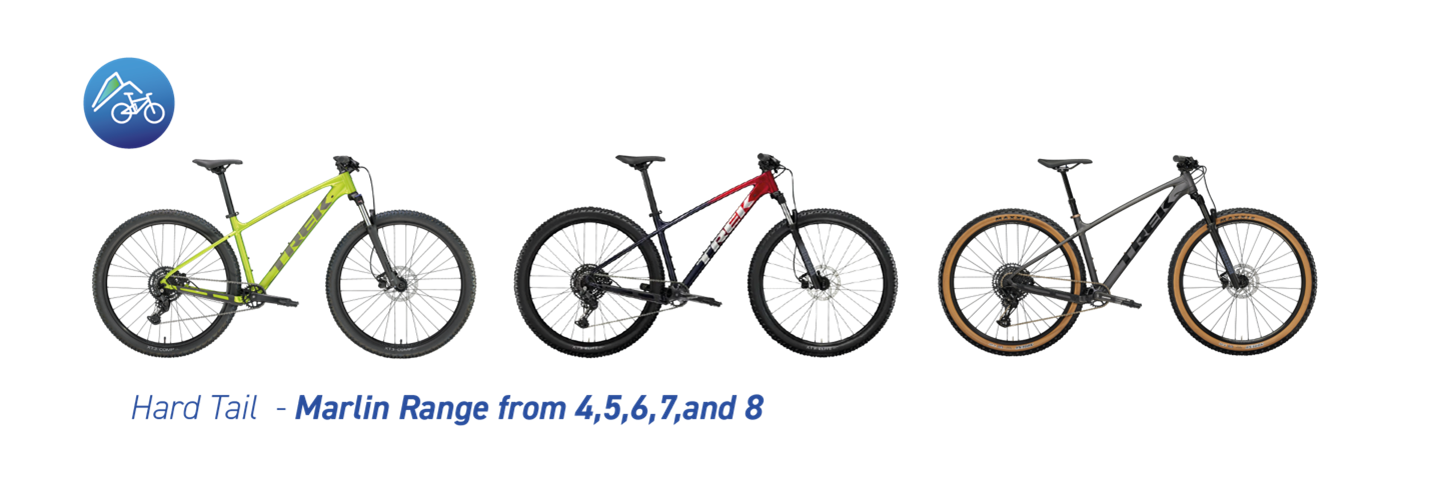 Hardtail is the term used for a mountain bike with a suspension fork up front but no suspension on the rear of the frame. This is the simplest, most reliable approach to building a mountain bike. Most brand’s model line-up will start with a range of well priced hardtails. For Trek – the main brand we stock at Bay Cycles – it’s the Marlin range.