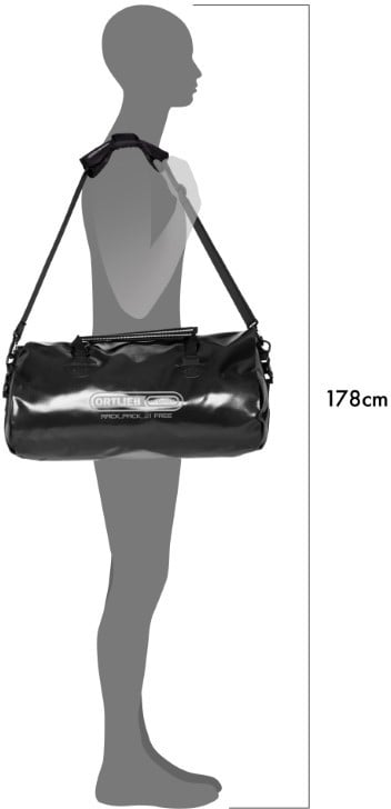 This 100% waterproof PVC Free travel bag has all the advantages of an easy to use dry bag: its flexible and variable packing volume adjusts to any situation and takes all the gear for travelling and sports. The roll closure with stiffener bar has its roots in stuff sack technology. It fits perfectly into bike trailers and this size can be combined with Ortlieb Back/Sport-Rollers on the rack for bike touring. This robust bag is also good on motorcycles. Comfortably carried with adjustable padded shoulder strap and carrying handles.Fabric: PD62/PS60Height: 30cmWidth: 54cmDepth: 27cmVolume: 31LWeight: 710g