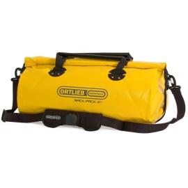This 100% waterproof travel bag has all the advantages of an easy to use dry bag: its flexible and variable packing volume adjusts to any situation and takes all the gear for travelling and sports. The roll closure with stiffener bar has its roots in stuff sack technology. It fits perfectly into bike trailers and size 24L or 31L can be combined with Ortlieb Back/Sport-Rollers on the rack for bike touring. This robust bag is also good on motorcycles. Comfortably carried with adjustable padded shoulder strap and carrying handles. The Rack-Pack is available in four sizes.