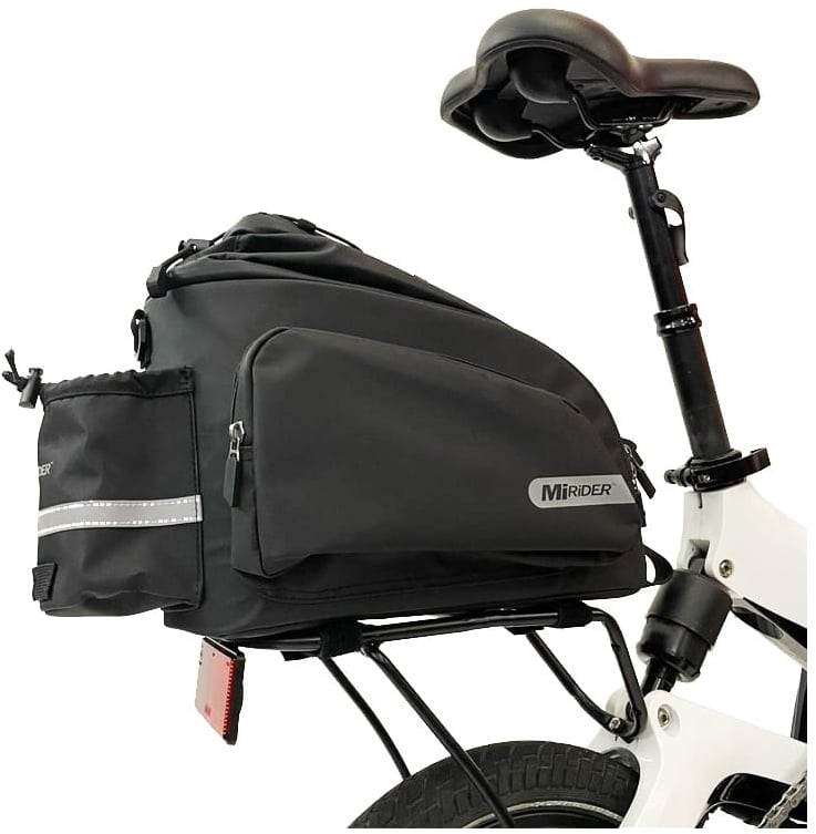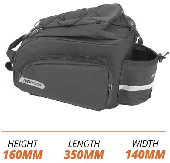 This water-resistant trunk bag will sit perfectly atop your pannier rack and is exactly what you need to carry a spare battery, your lunch and even a spare layer of clothing. The rigid construction ensures the bag sits stable upon your rack and comes equipped with a waterproof cover for those unfortunate days you get caught out in the rain. It has three velcro straps to attached to rear rack.